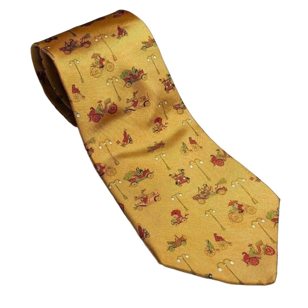 Salvatore Ferragamo Silk Tie Yellow Made in Italy Authentic