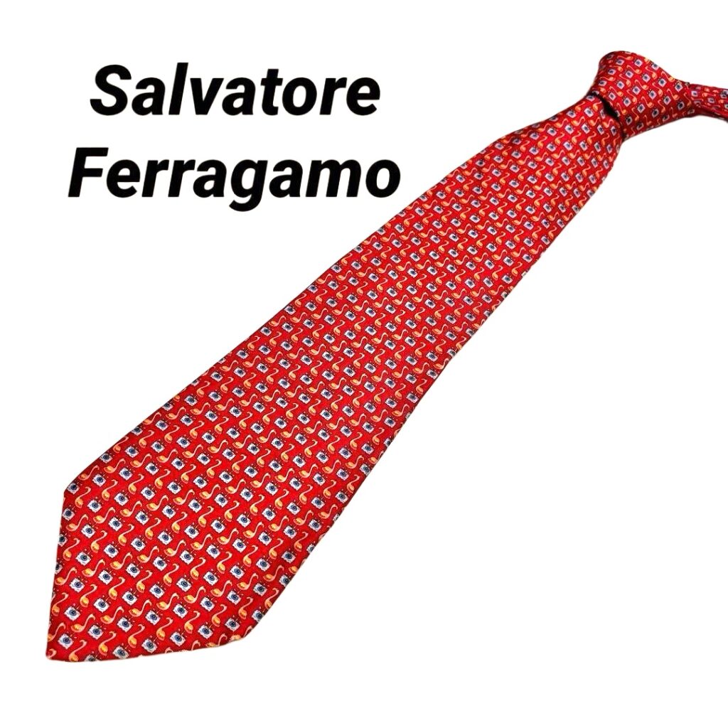 Salvatore Ferragamo Silk Tie Red Animal Print Made in Italy Authentic