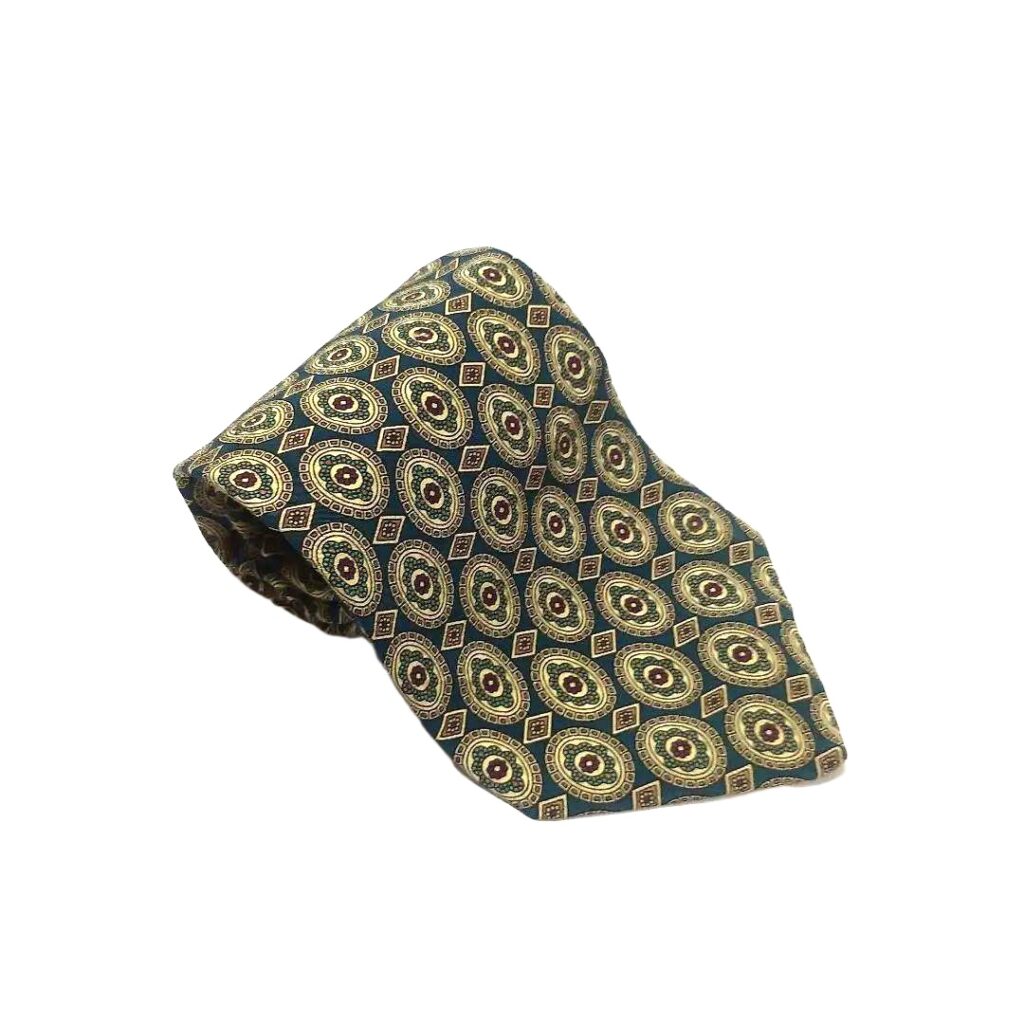 Christian Dior Silk Tie Green Geometric Made in France Authentic