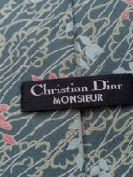 Christian Dior Silk Tie Green Floral Made in France Authentic