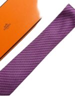 Hermes Silk Tie Pink Striped Made in France Authentic