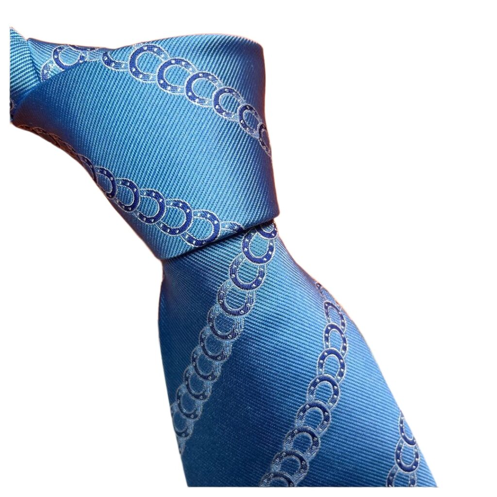 Hermes Silk Tie Blue Animal Print Made in France Authentic