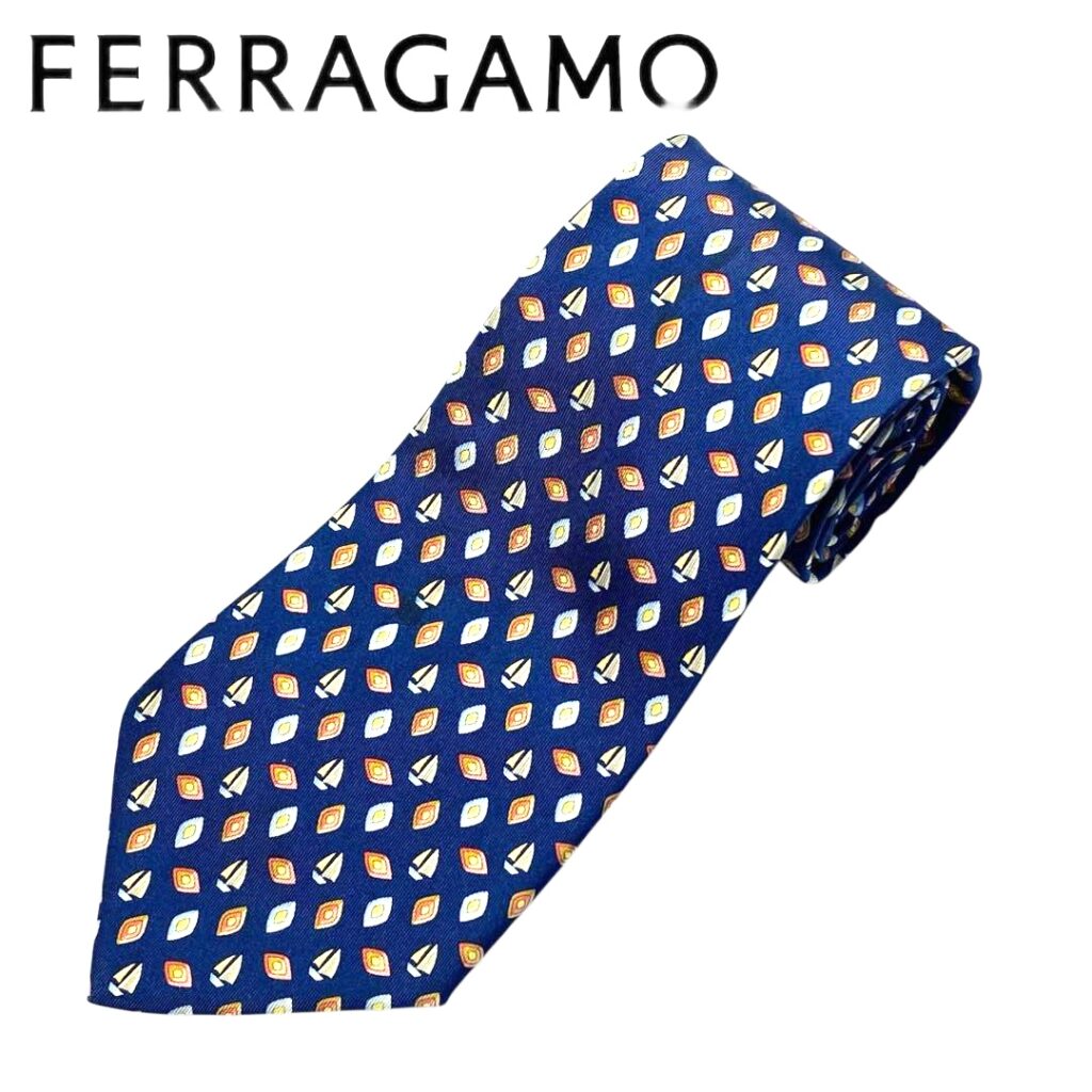 Salvatore Ferragamo Silk Tie Blue Geometric Made in Italy Authentic