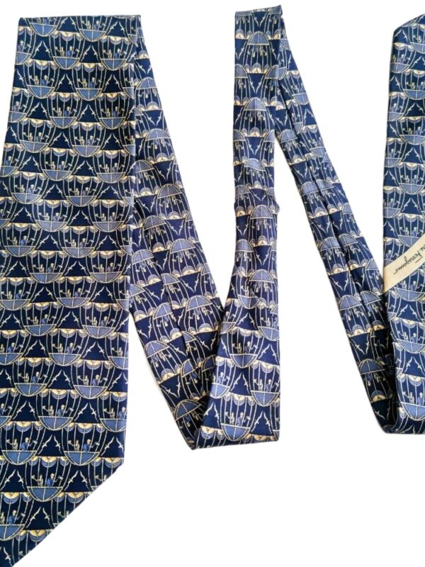 Ferragamo Silk Tie Blue Animal Print Made in Italy Authentic