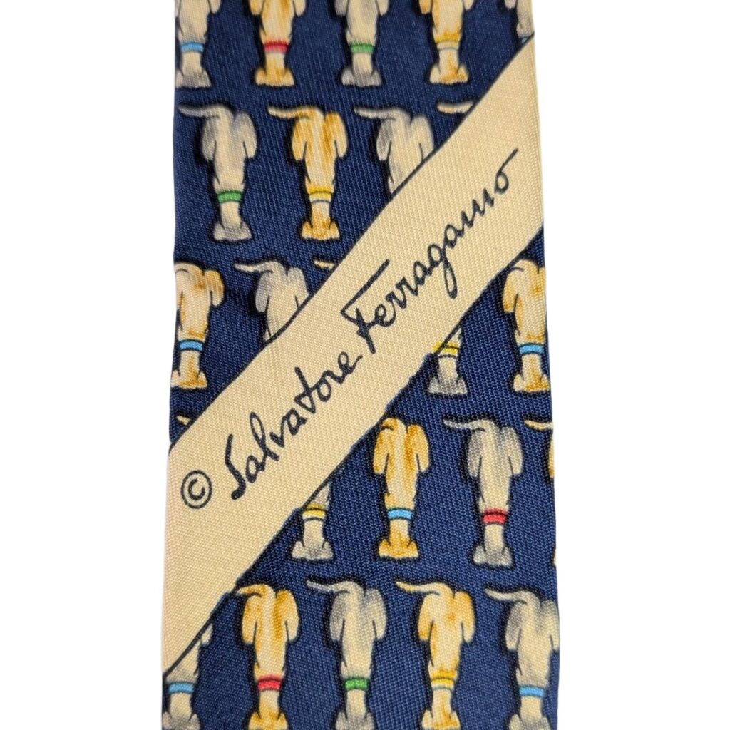 Ferragamo Silk Tie Blue Animal Print Made in Italy Authentic