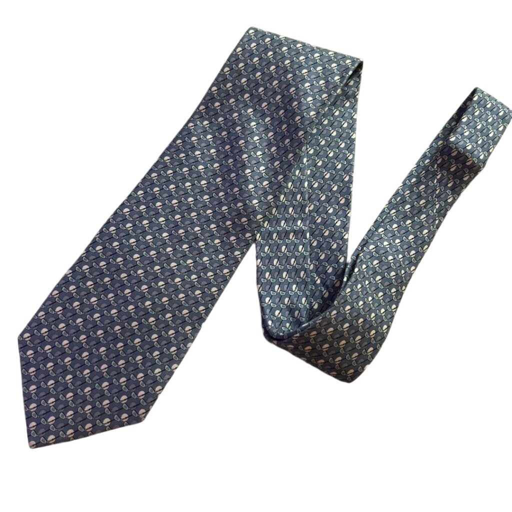 Ferragamo Silk Tie Blue Dot Made in Italy Authentic