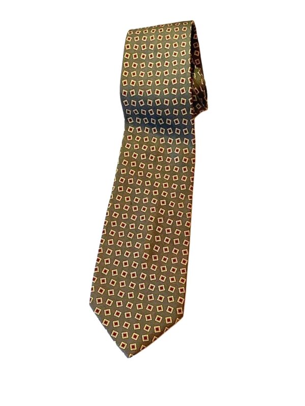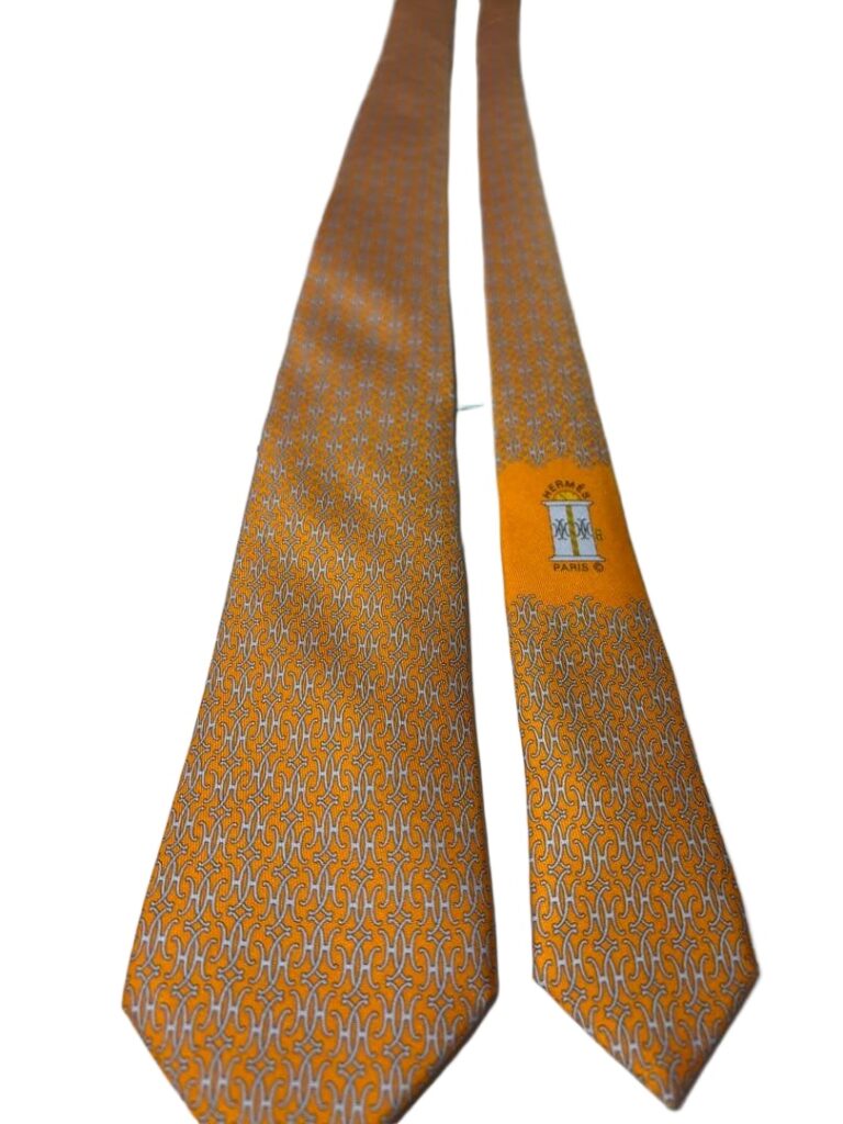 Hermes Silk Tie Orange Geometric Made in France Authentic