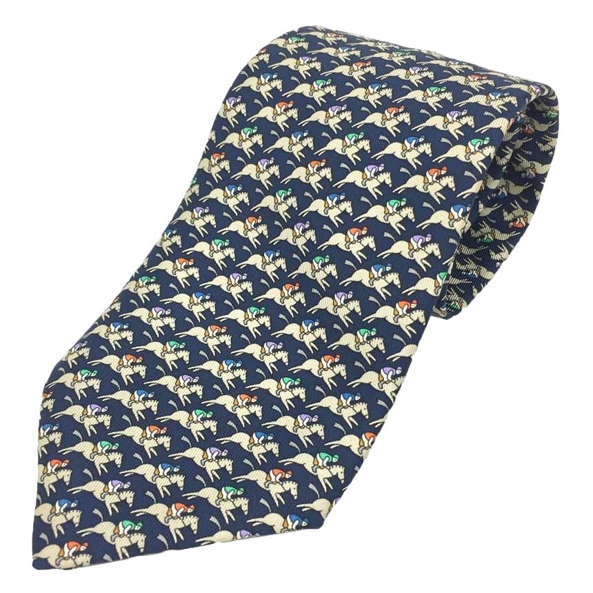 Hermes Silk Tie Multicolor Animal Print Made in France Authentic
