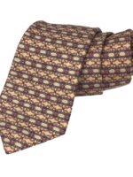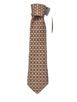 Hermes Silk Tie Brown Geometric Made in France Authentic