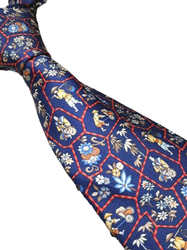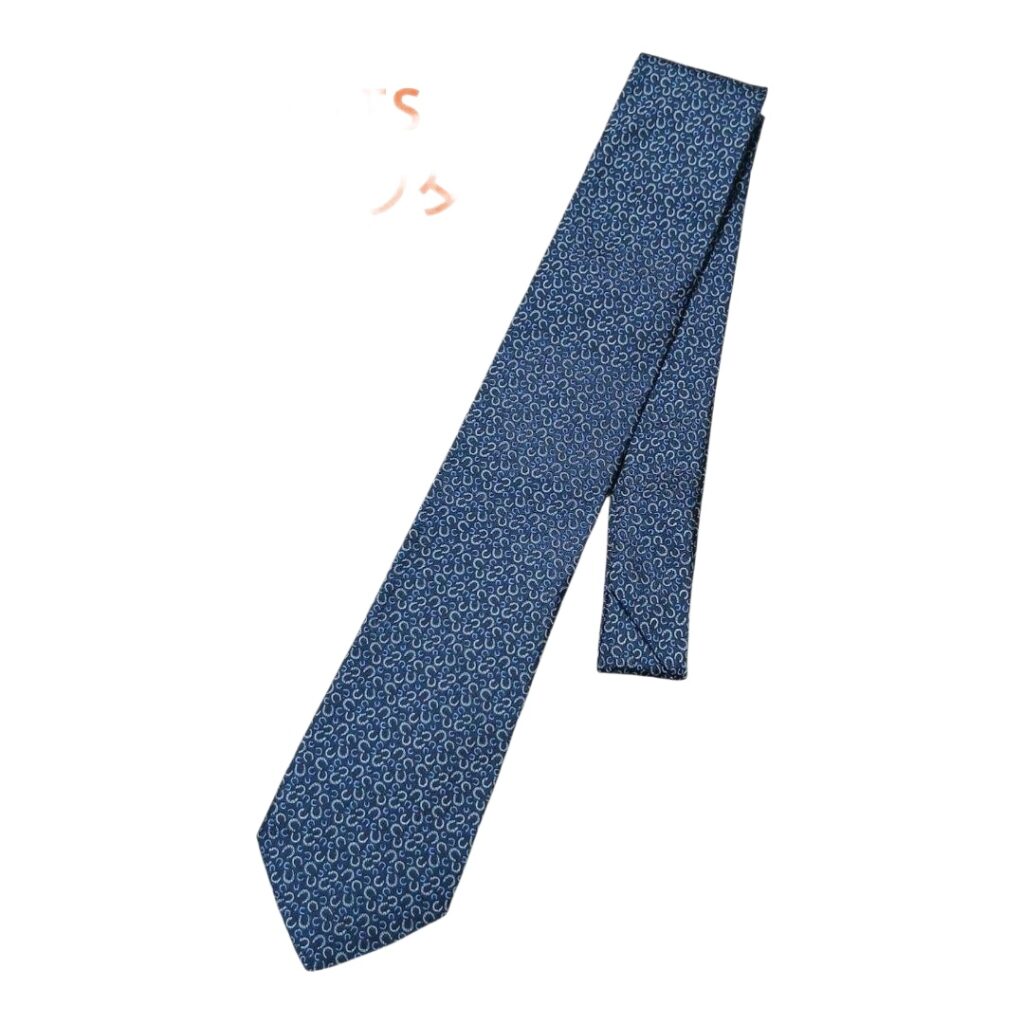 Hermes Silk Tie Blue Animal Print Made in France Authentic