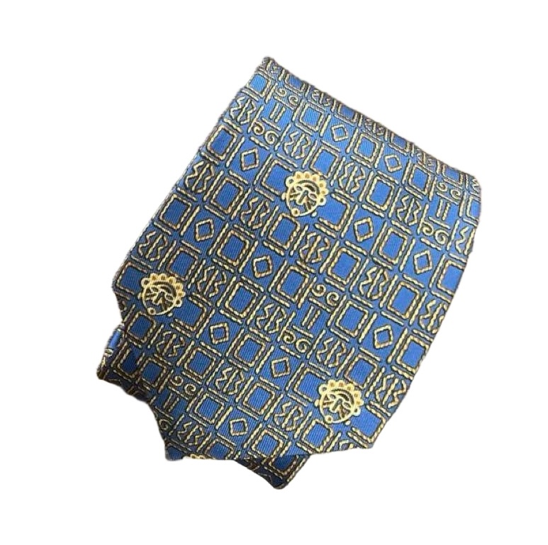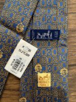 HERMES Silk Tie Blue Geometric Made in France Authentic