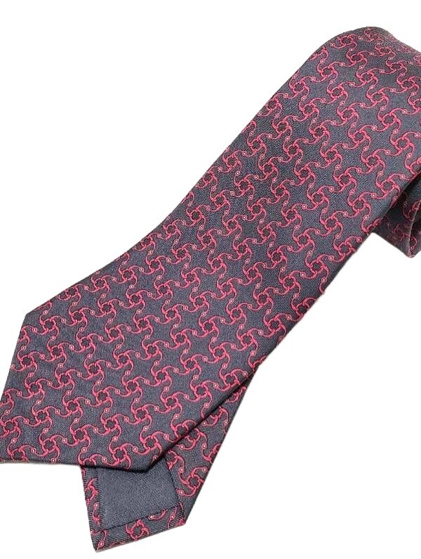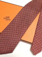 HERMES Silk Tie Red Geometric Made in France Authentic