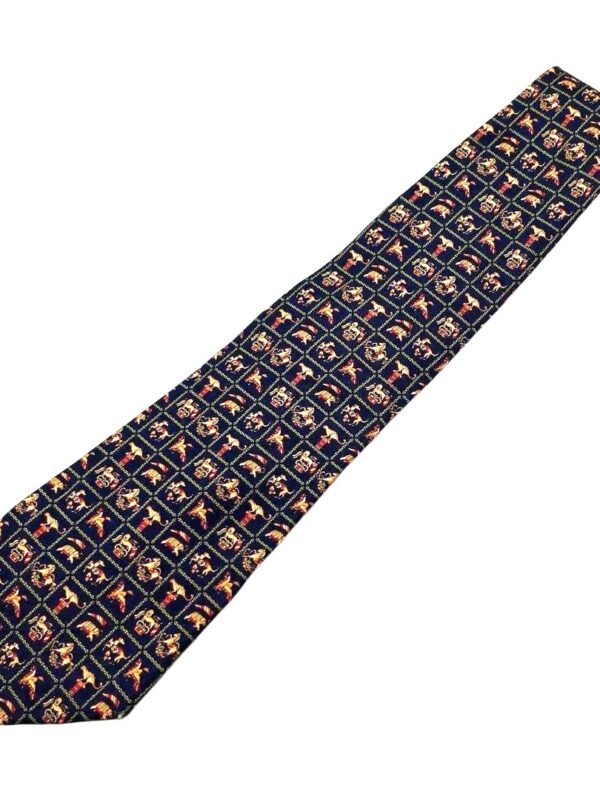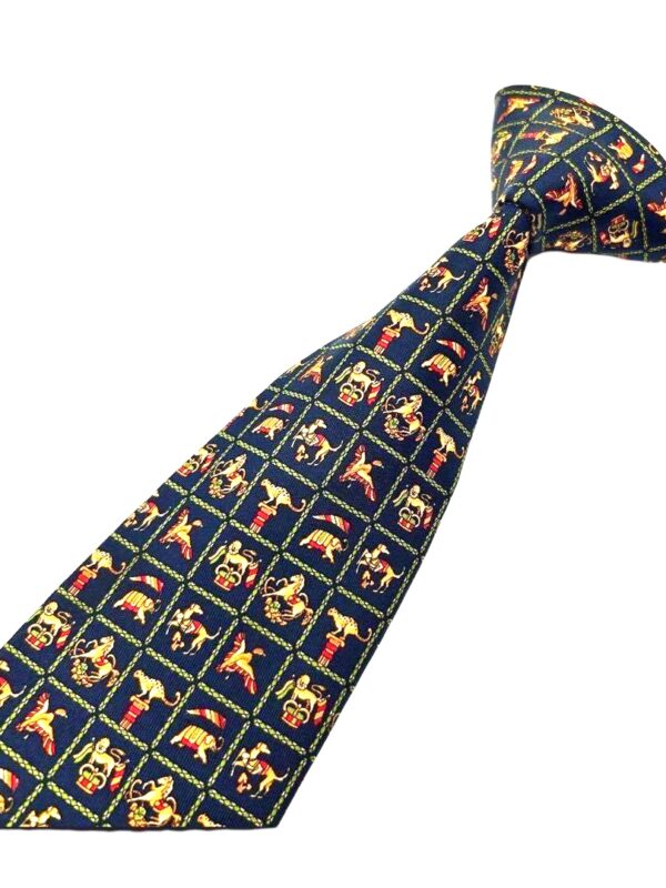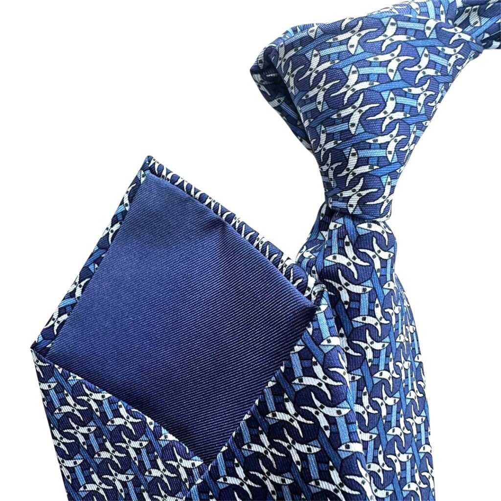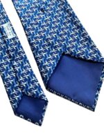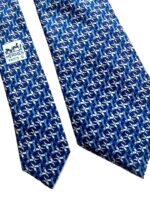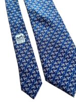 HERMES Silk Tie Blue Geometric Made in France Authentic
