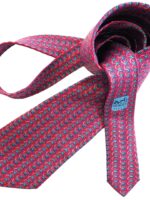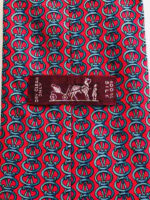 HERMES Silk Tie Red Geometric Made in France Authentic