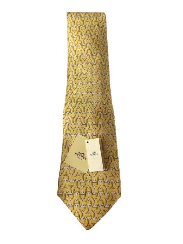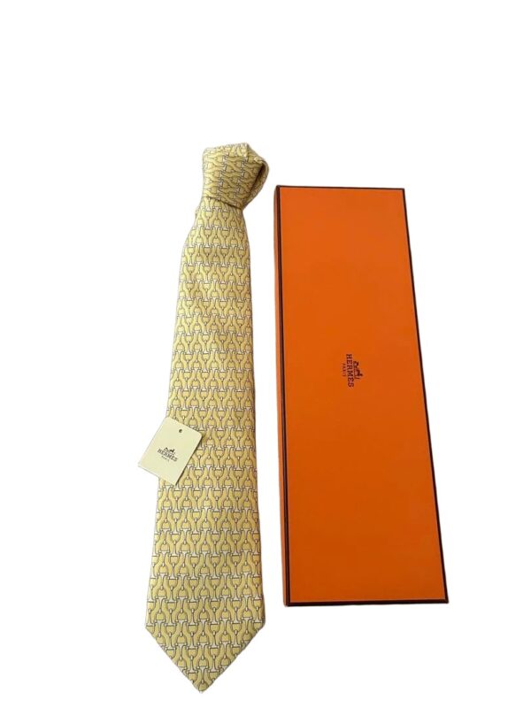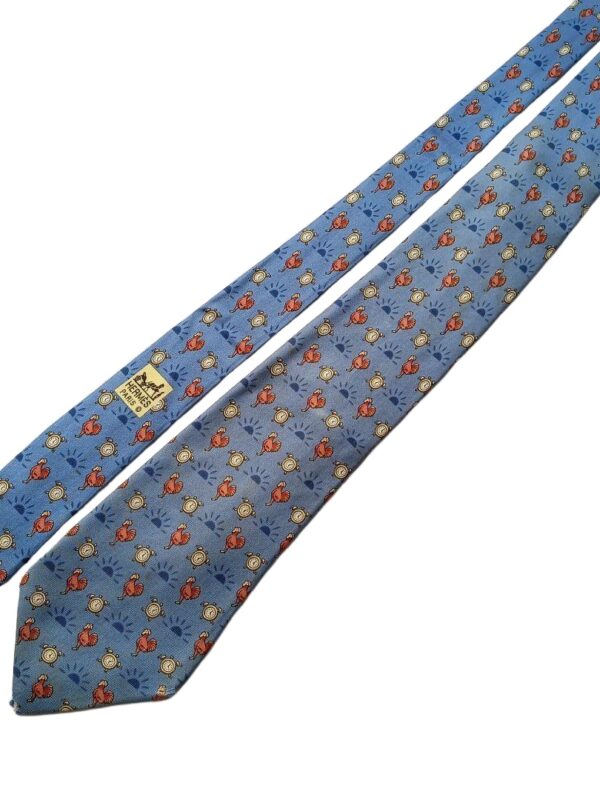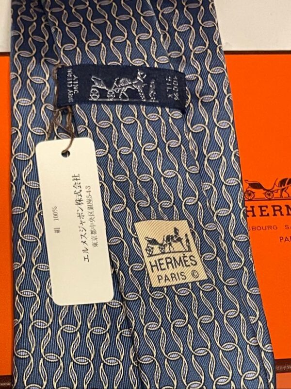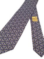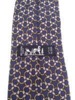 HERMES Silk Tie Blue Geometric Made in France Authentic