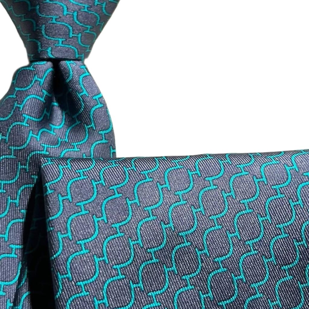 HERMES Silk Tie Blue Geometric Made in France Authentic