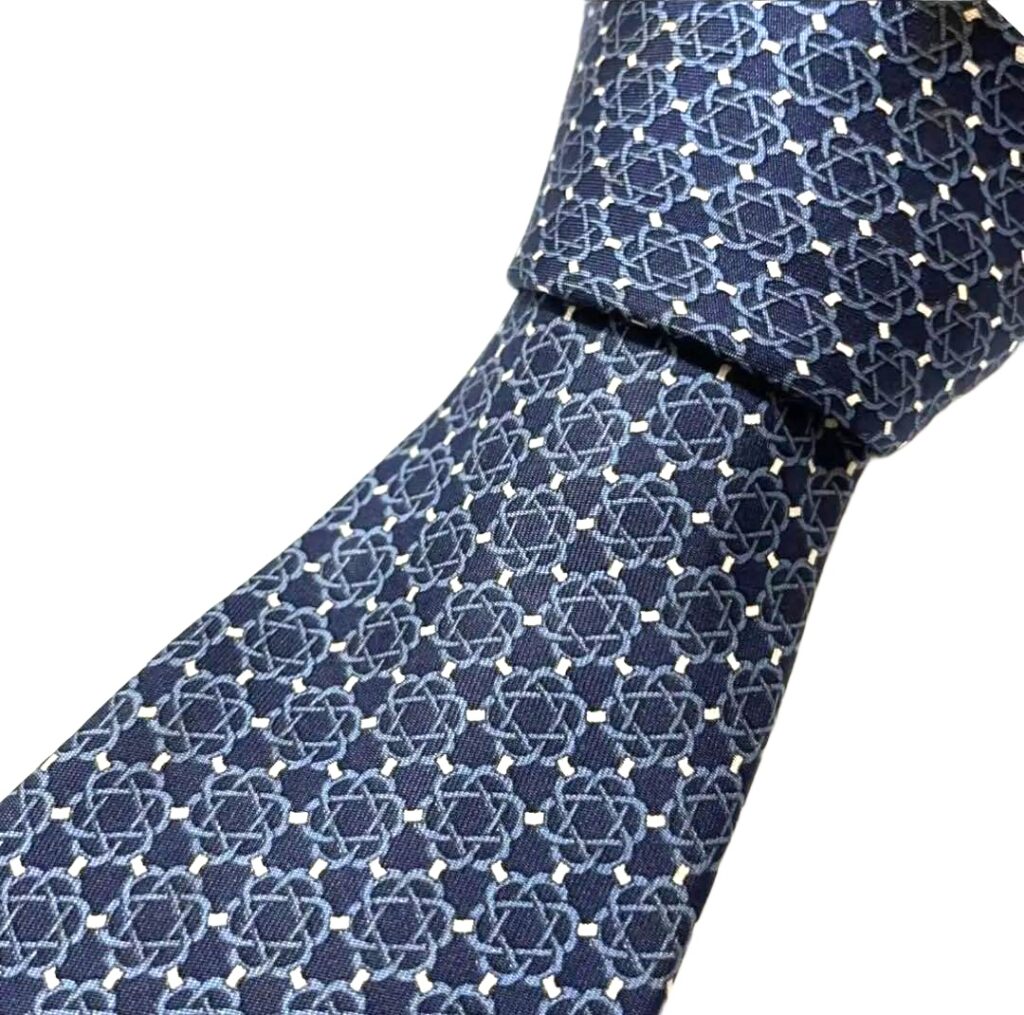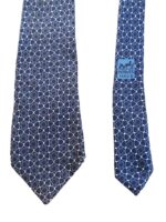 HERMES Silk Tie Blue Geometric Made in France Authentic