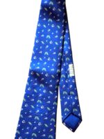 HERMES Silk Tie Blue Animal Print Made in France Authentic