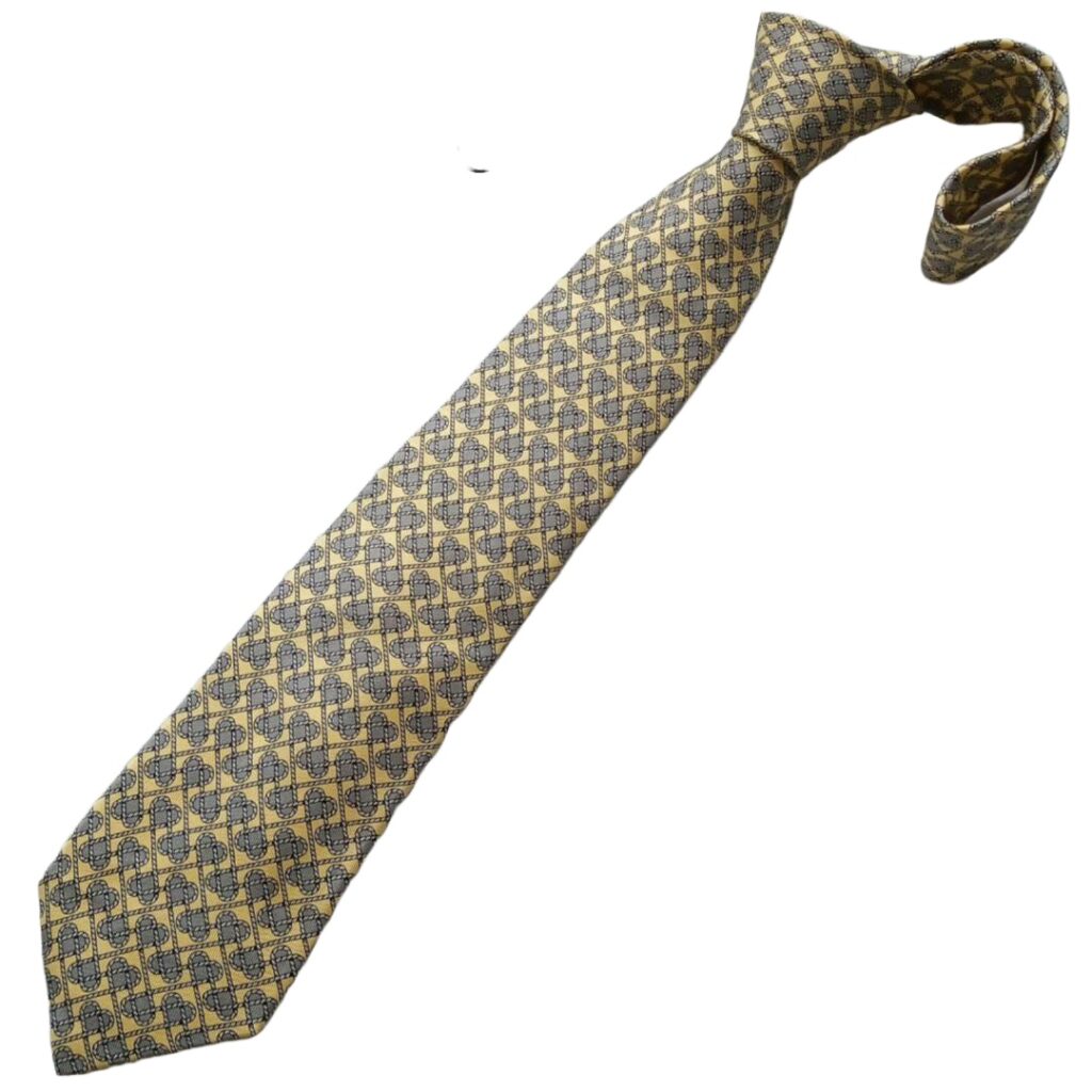HERMES Silk Tie Yellow Geometric Made in France Authentic
