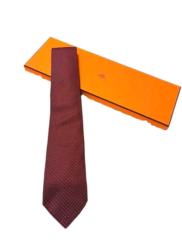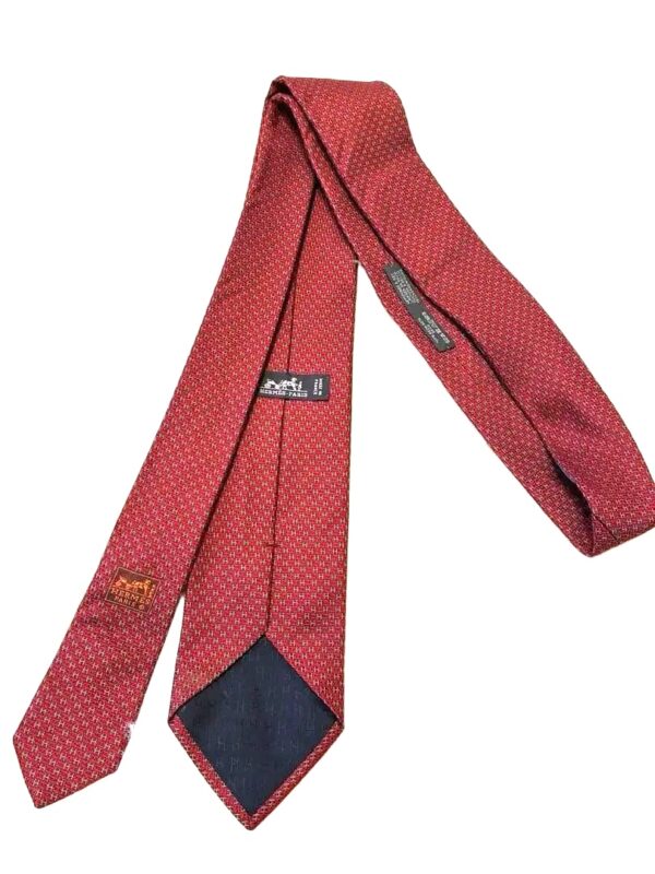 HERMES Silk Tie Red Geometric Made in France Authentic