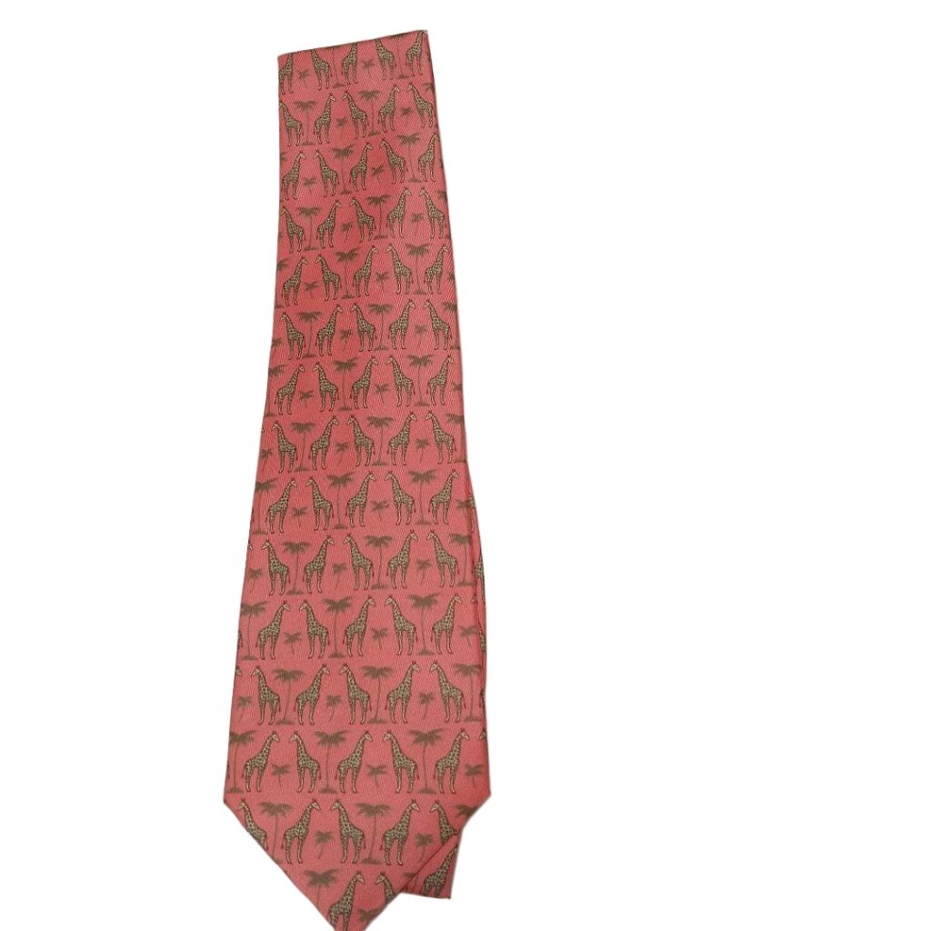 HERMES Silk Tie Red Animal Print Made in France Authentic