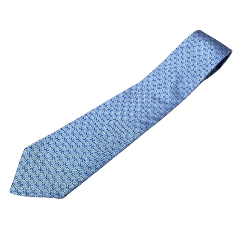 HERMES Silk Tie Blue Geometric Made in France Authentic