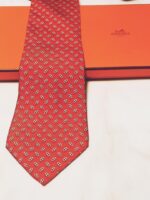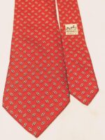 HERMES Silk Tie Red Geometric Made in France Authentic