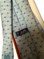 HERMES Silk Tie Blue Animal Print Made in France Authentic