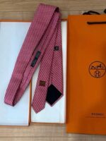 HERMES Silk Tie Red Geometric Made in France Authentic