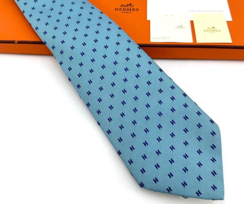 HERMES Silk Tie Blue Dot Made in France Authentic