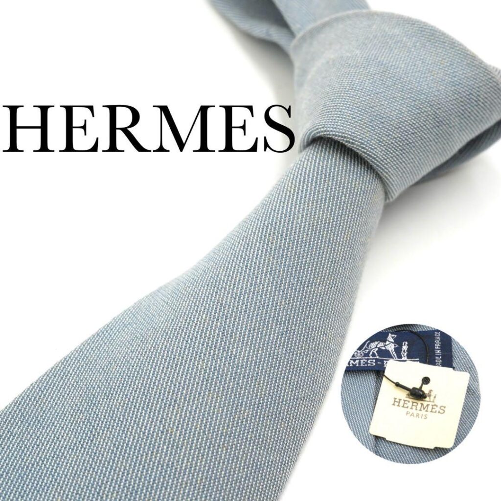 HERMES Silk Tie Gray Made in France Authentic