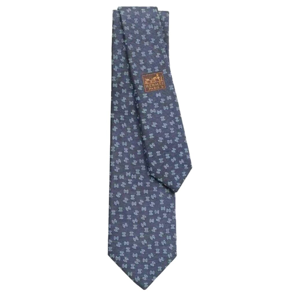 HERMES Silk Tie Blue Dot Made in France Authentic