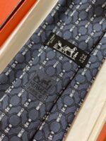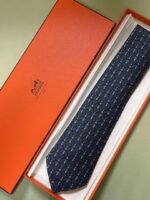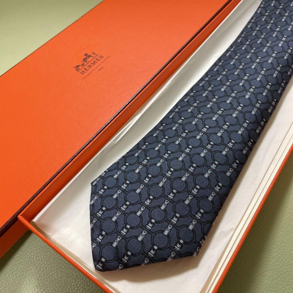 HERMES Silk Tie Blue Geometric Made in France Authentic