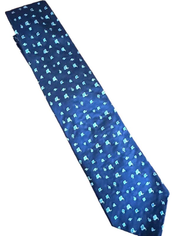 HERMES Silk Tie Blue Geometric Made in France Authentic