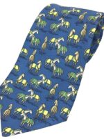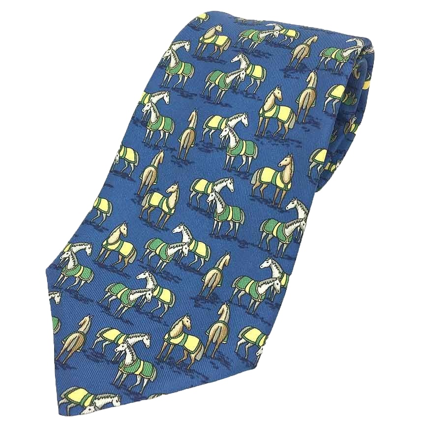 HERMES Silk Tie Blue Animal Print Made in France Authentic