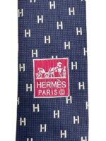 HERMES Silk Tie Blue Dot Made in France Authentic