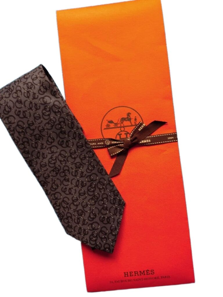 HERMES Silk Tie Brown Geometric Made in France Authentic