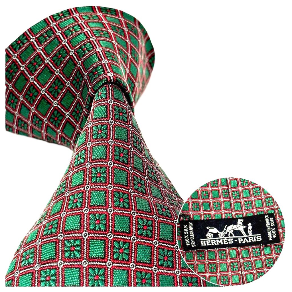 HERMES Silk Tie Green Plaid Made in France Authentic