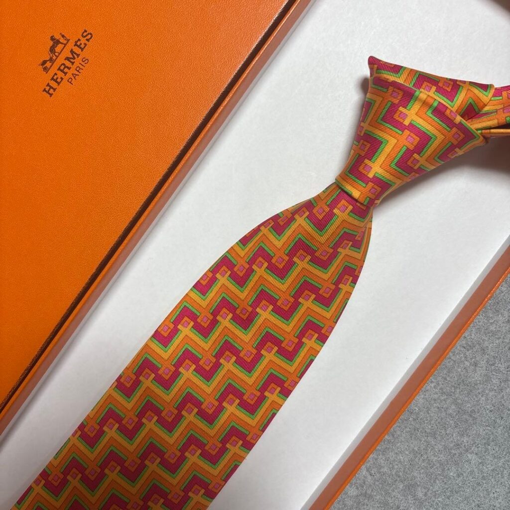 HERMES Silk Tie Multicolor Geometric Made in France Authentic