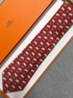 HERMES Silk Tie Red Animal Print Made in France Authentic