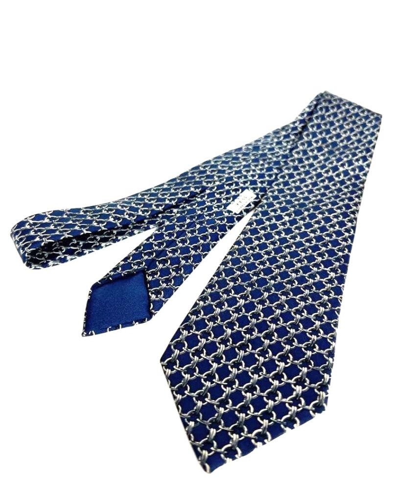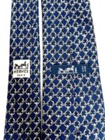 HERMES Silk Tie Blue Plaid Made in France Authentic