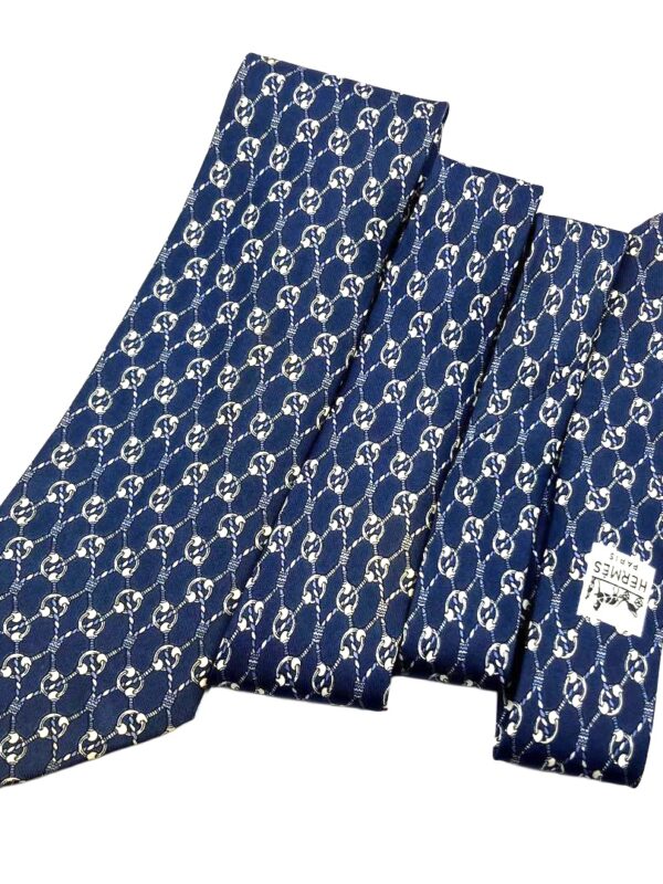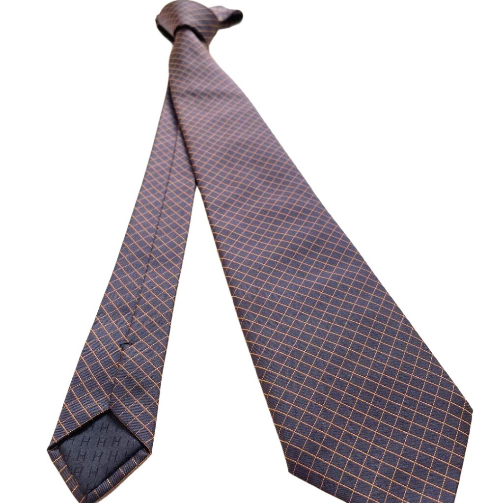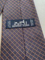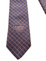 HERMES Silk Tie Blue Plaid Made in France Authentic