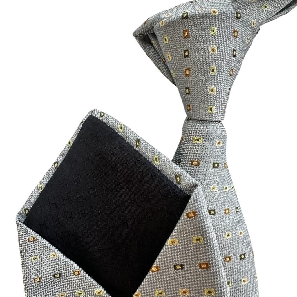 HERMES Silk Tie Gray Dot Made in France Authentic