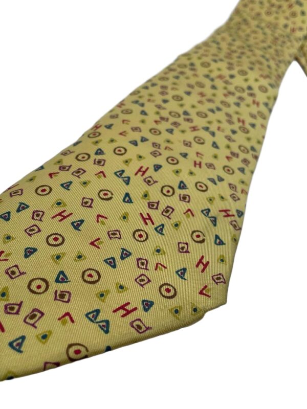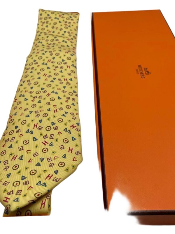 HERMES Silk Tie Yellow Geometric Made in France Authentic