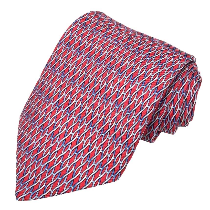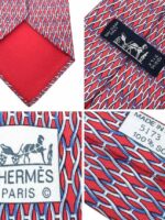 HERMES Silk Tie Red Geometric Made in France Authentic