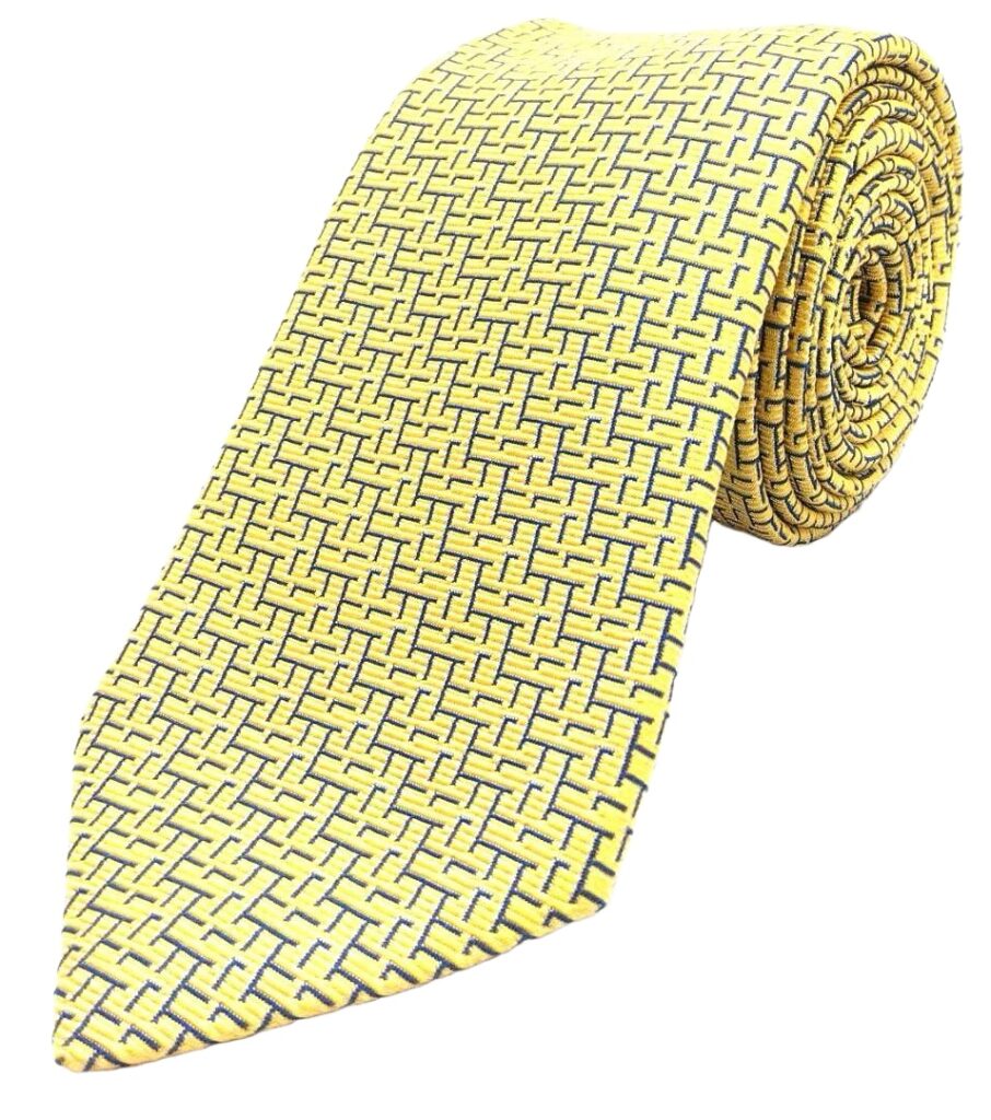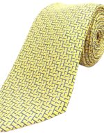 HERMES Silk Tie Yellow Geometric Made in France Authentic