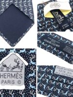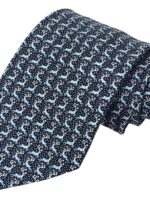 HERMES Silk Tie Blue Animal Print Made in France Authentic