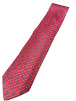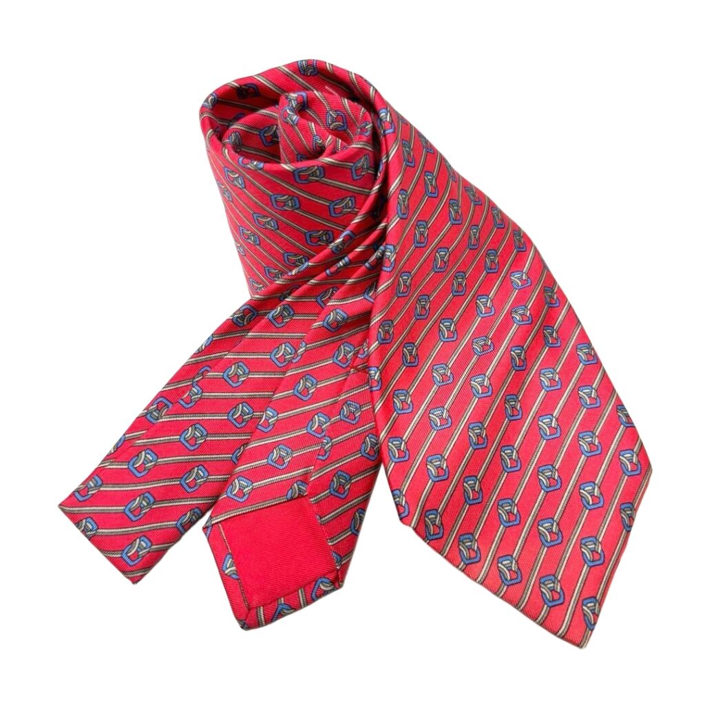 HERMES Silk Tie Red Striped Made in France Authentic
