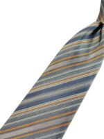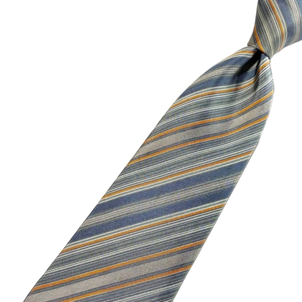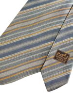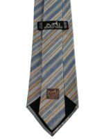 HERMES Silk Tie Blue Striped Made in France Authentic