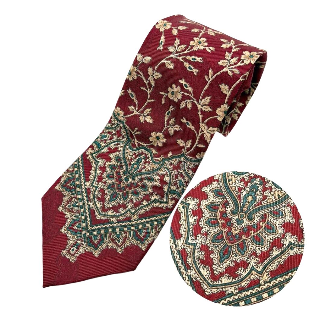 BURBERRY Silk Tie Red Floral Made in United Kingdom Authentic